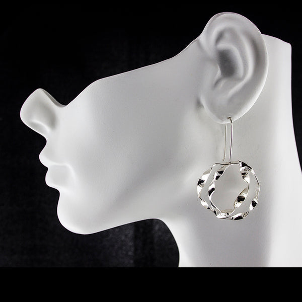 Skylar, solar halo-inspired large earrings from the Galaxy Halo line. The two intersecting twisted hoops represent the open spaces of the galaxy